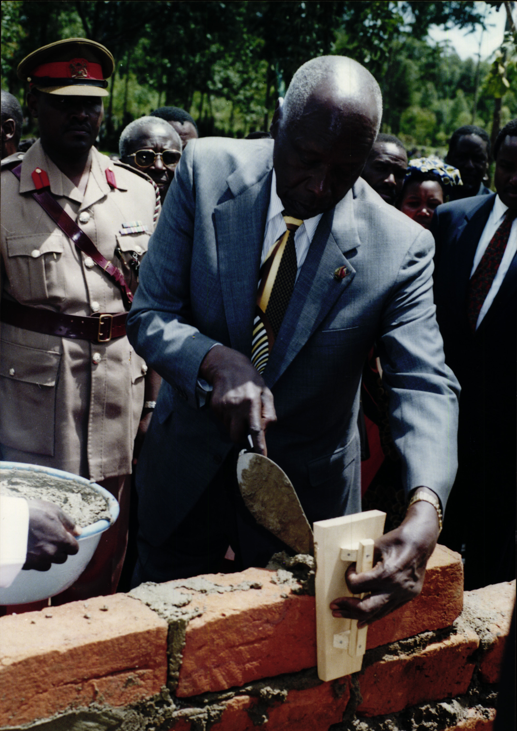 9. President Moi laying a brick on the foundation of the new AITC